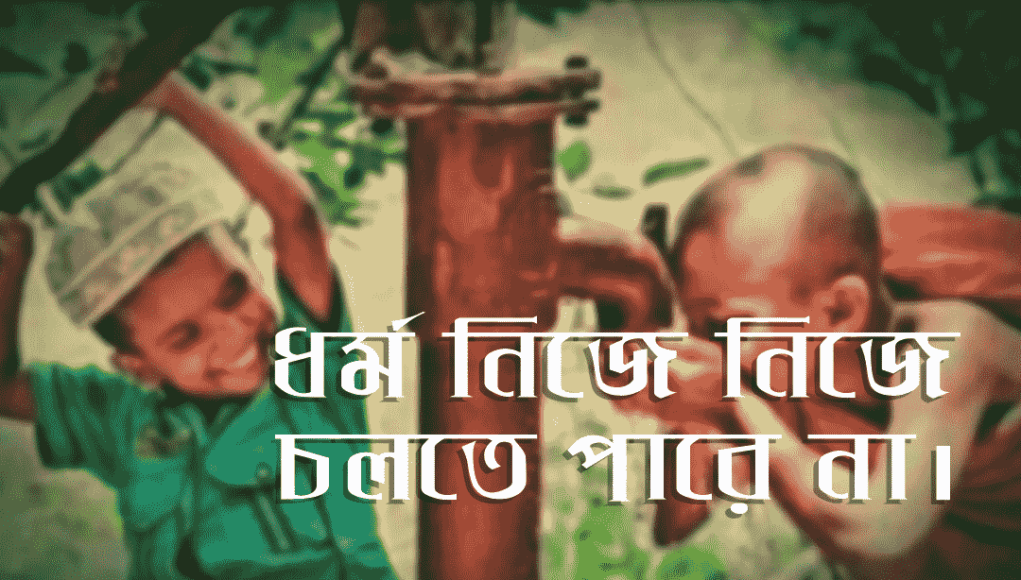 ধর্ম নিজে নিজে চলতে পারে না, সে চোখেও দেখে না তার হাত-পা কিছু-ই নেই কারো না কারোর কাঁধে ভর দিয়ে বা হাত ধরে চলতে হয়। আর এই হাত ধরা বা ভর করা ব্যাক্তি যদি পরিপূর্ণ না হয়, ধর্ম তখন কাঁনার হাত ধরে খাঁদে পড়ে সরল ধর্ম হয়ে যায় গরল। তখন সে “ধর্ম” আর ধর্ম আর থাকে না অধর্মতে রুপান্তর হয়। ধর্ম দেখা যায়না ধার্মিককে দেখা যায়