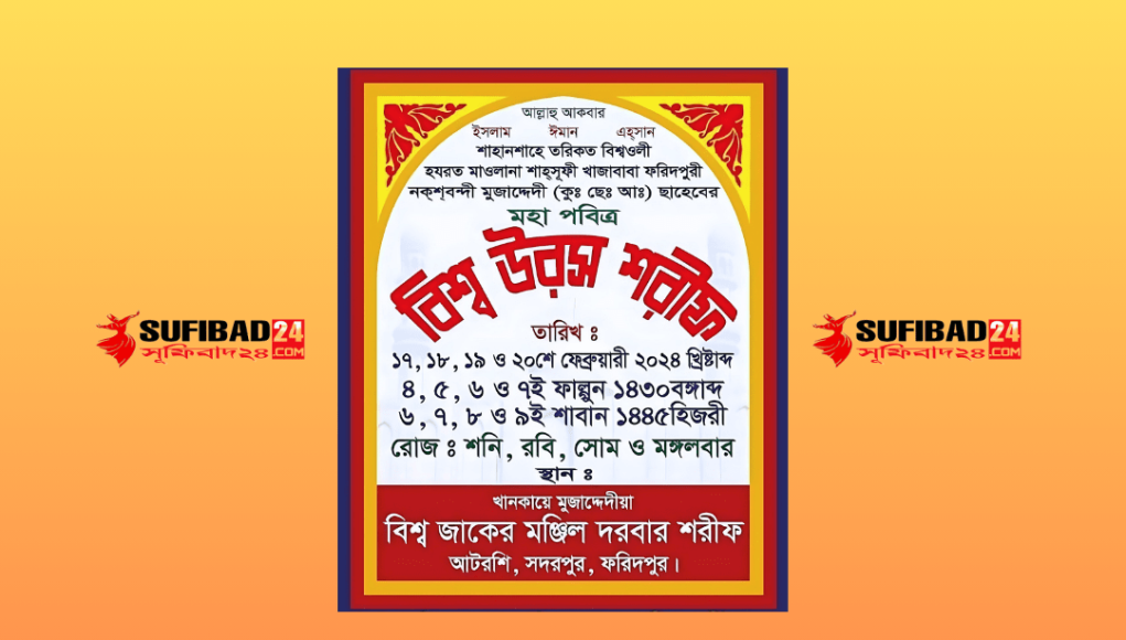 ২০২৪ সালের মহাপবিত্র উরস শরীফের নির্ধারিত তারিখঃ
