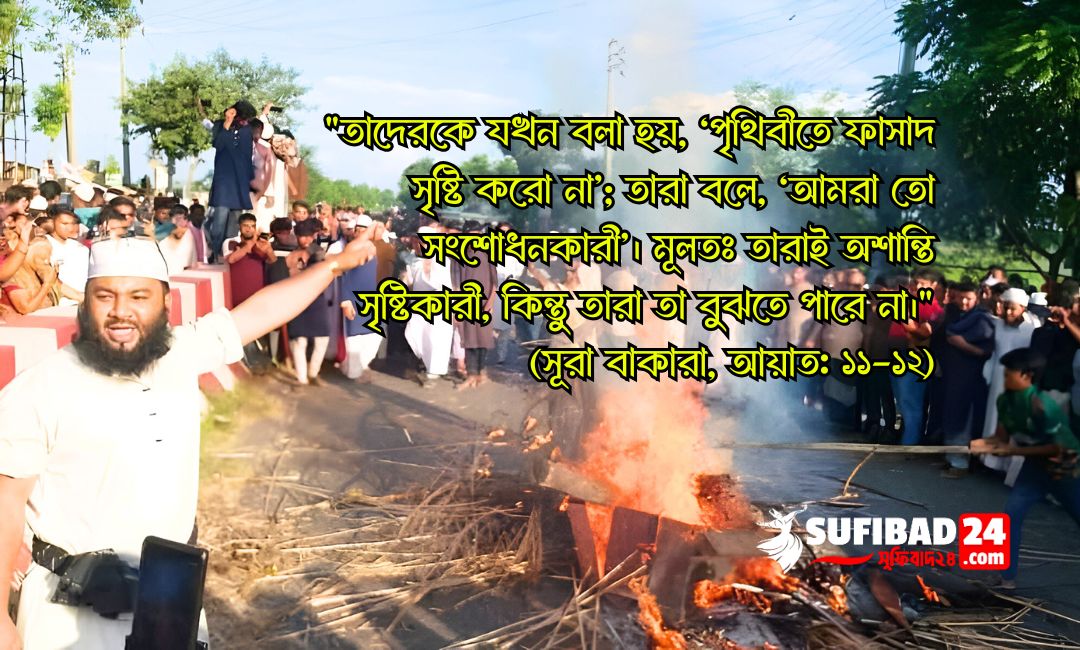 “তাদেরকে যখন বলা হয়, ‘পৃথিবীতে ফাসাদ সৃষ্টি করো না’; তারা বলে, ‘আমরা তো সংশোধনকারী’। মূলতঃ তারাই অশান্তি সৃষ্টিকারী, কিন্তু তারা তা বুঝতে পারে না।” (সূরা বাকারা, আয়াত: ১১-১২)