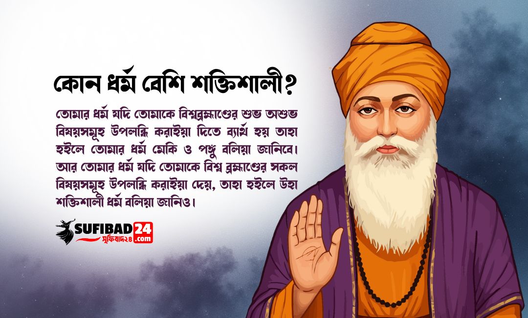 তোমার ধর্ম যদি তোমাকে বিশ্বব্রহ্মাণ্ডের শুভ অশুভ বিষয়সমূহ উপলব্ধি করাইয়া দিতে ব্যার্থ হয় তাহা হইলে তোমার ধর্ম মেকি ও পঙ্গু বলিয়া জানিবে। আর তোমার ধর্ম যদি তোমাকে বিশ্বব্রহ্মাণ্ডের সকল বিষয়সমূহ উপলব্ধি করাইয়া দেয়, তাহা হইলে উহা শক্তিশালী ধর্ম বলিয়া জানিও।