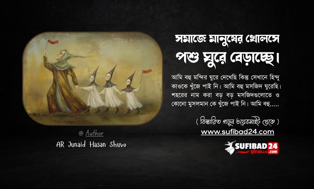 তোমাদের খোলস টা ব্যতীত মানুষ এর আর কোনো বৈশিষ্ট্য তোমাদের মাঝে নেই। এই খোলসের যেদিন মৃত্যু হবে সেদিন থেকে তোমরা পশু, তোমাদের পশুর খোলস সেদিন উন্মোচন হবে। আর তোমরা চাক্ষুষ পশুতে ও সেদিনই পরিনত হবে।