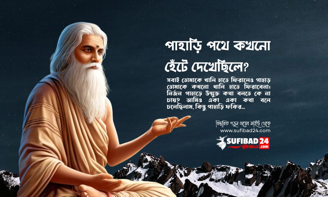 সবাই তোমাকে খালি হাতে ফিরালেও পাহাড় তোমাকে কখনো খালি হাতে ফিরাবেনা। নির্জন পাহাড়ে উন্মুক্ত কথা বলতে কে না চায়? আমিও একা একা কথা বলে চলেছিলাম, কিন্তু পাহাড়ি ফকির অট্টহাসির মাধ্যমে আমাকে থামিয়ে দিয়েছিলো।